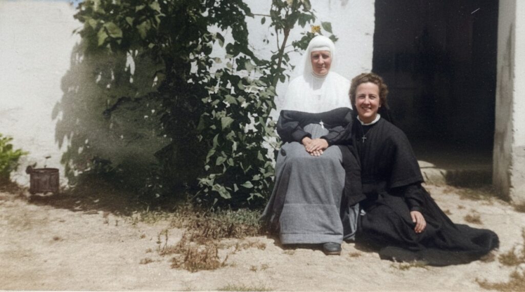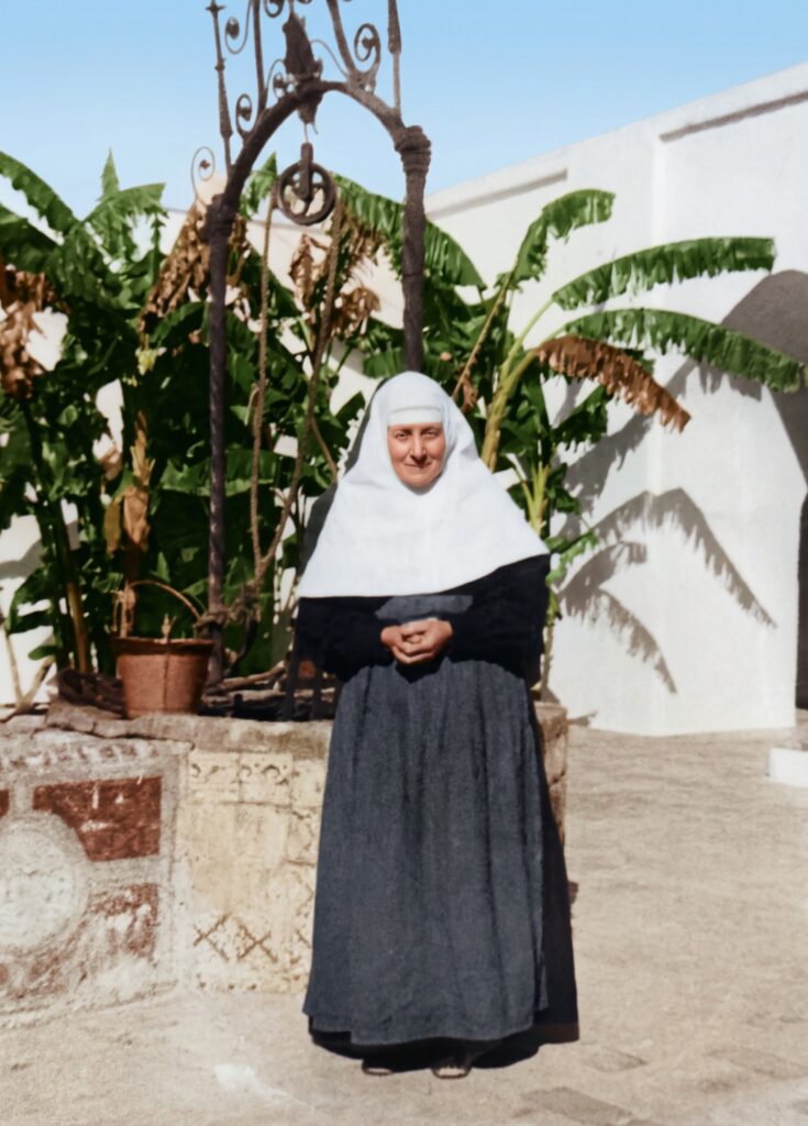 María Jacinta Leoncia Montes Osuna, Hermana Brígida en el patio del convento de Santa Clara de Moguer (Huelva). Portera y campanera durante treinta años. El pueblo de Moguer, rinde merecidos homenajes a esta monja clarisa, en reconocimiento al importante papel que jugó en la recuperación y conservación de la valiosa sillería nazarita del coro, pieza única en el mundo, y por su generosidad y su constante atención a los más desfavorecidos, promotora de muchas obras de caridad.